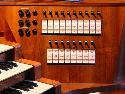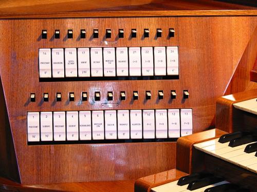 Les registres de l'orgue de choeur se trouvent au-dessus des claviers.