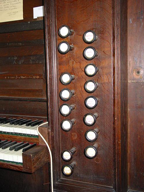 Plusieurs jeux furent repris de l’orgue précédent de Egide-François Van Peteghem de Gand et de l’orgue d’Alsemberg de Pierre-Hubert Anneessens de Ninove.