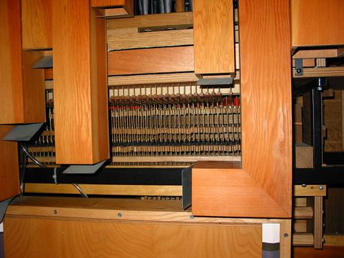 Entièrement mécanique (tirage des notes, des registres, ainsi que les accouplements)
