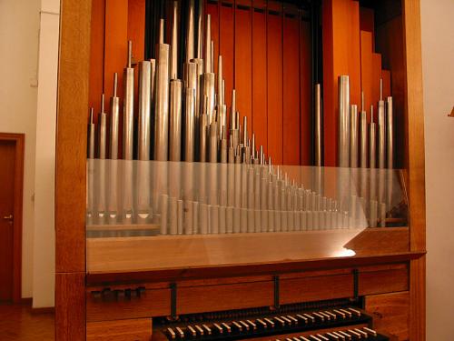 Anche 8' : Type Régale ou Voix humaine avec pavillon court et cylindrique. Calotte soudée très fermée dans les graves puis ouverte, voire presque absente dans l'aigu.
