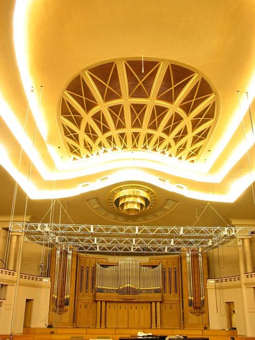 La construction, retardée par de malheureux contretemps, se poursuit, et on peut donc espérer entendre à nouveau, bientôt, un très bel orgue au Palais des Beaux-Arts.