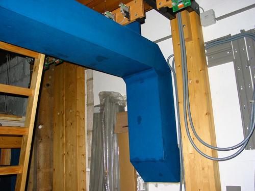Réservoirs mis en mouvement par douze pompes qui fonctionnent à l’aide d’un arbre de transmission. Tout le mécanisme est en fer. Les pompes fournissent 311 litres d’air par seconde.