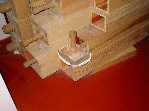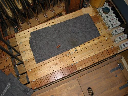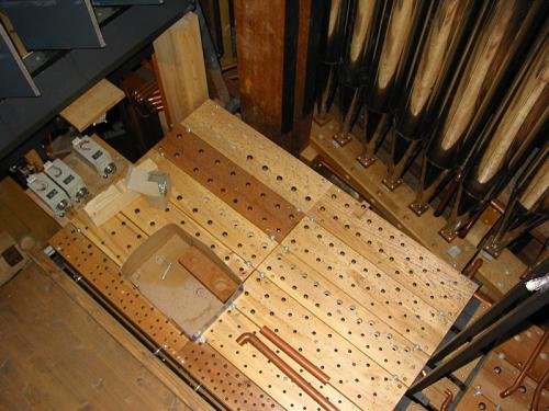 La distribution du vent se fait sous trois pressions différentes : 130 mm pour les jeux d’anches du G.-O. et les quatre machines.