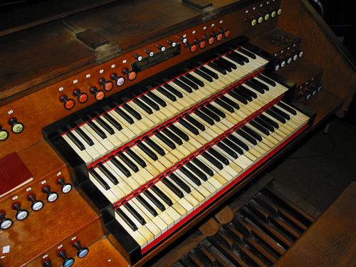 Allumage de l'orgue sur le mur à gauche de la console. Néon sur le buffet pour les claviers et lampes en dessous des claviers pour le pédalier.