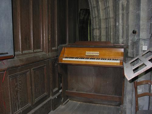 Seconde console. Intérieur en chêne laqué avec simple clavier surmonté d’une rangée horizontale de dominos à bascule pour les registres du Positif.