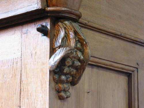 Signalons enfin pour l’anecdote que du côté intérieur de la porte s’ouvrant sur le flanc droit du buffet figure l’inscription suivante à la craie et en grandes lettres: