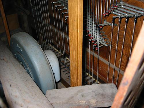 Le nombre de tirants de registres avait diminué depuis l’origine puisqu’on n’en dénombrait déjà plus que six à gauche et cinq à droite, contre sept de chaque côté, initialement, comme l’attestent toujours aujourd’hui les traces des percements. Cette photographie est à ce point nette que l’on peut déchiffrer les inscriptions des étiquettes de registre: