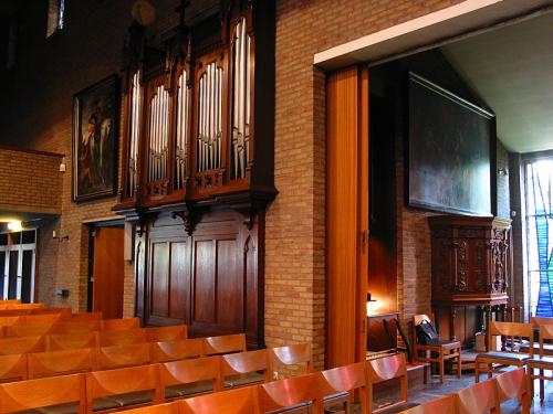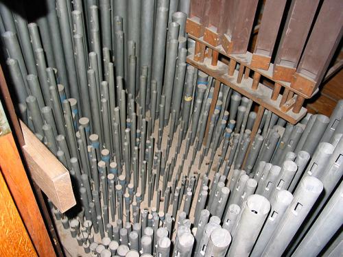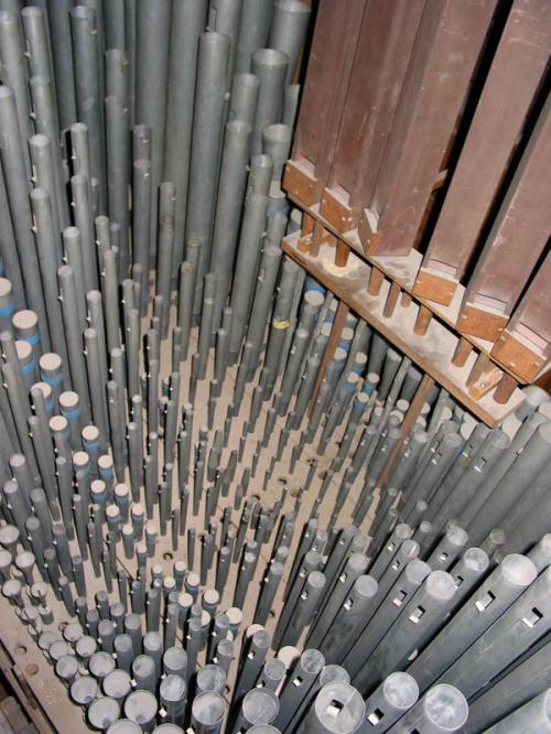 Frontons verticaux au Grand-Orgue et inclinés au Positif.