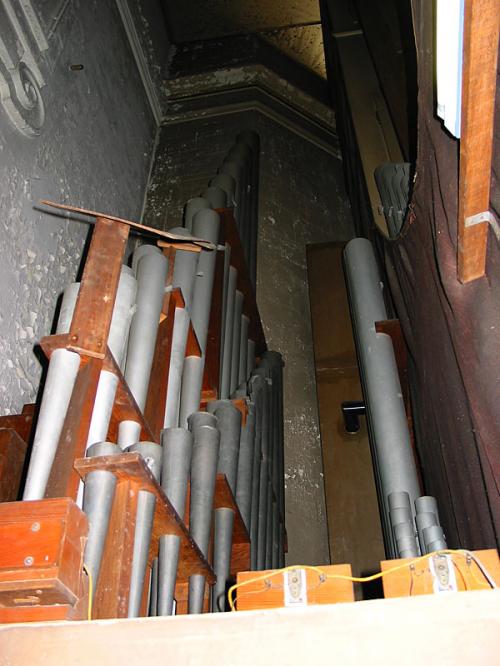 Petit meuble indépendant en chêne qui était situé près du meuble de droite à l’avant de la tribune. Il est actuellement stocké dans le transept nord.