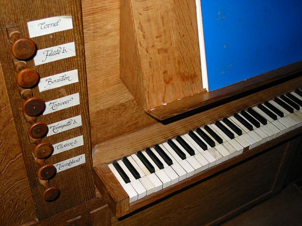 Anciennement, l’indication du nom d’un jeu se plaçait souvent sur une étiquette en parchemin et était écrite à la plume et à l’encre de Chine. Cette étiquette était collée sur le montant en bois où pénètrent les registres et juste à côté de celui-ci.