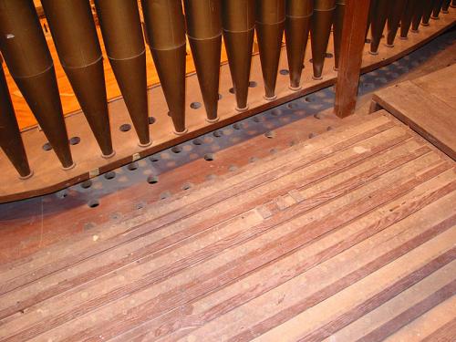 Aan de manualen en voeten, drukknoppen en voetknoppen :