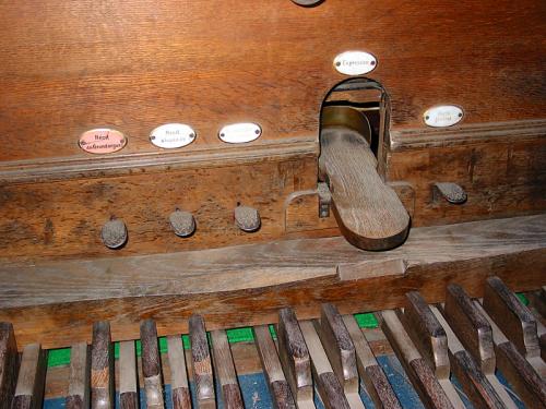 Une pédale à bascule pour l'expression et une cuiller en fer pour le Forté général