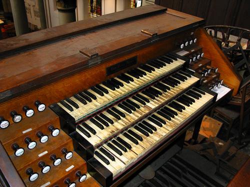 BOURDON 16’. 20 gedekte eiken pijpen met kernsteken en zijbaarden waarvan 10 achter het front en 10 geposteerd op de zijkant van de windlade, dan 36 tinnen pijpen met mobiele hoeden, zijbaarden en kernsteken.