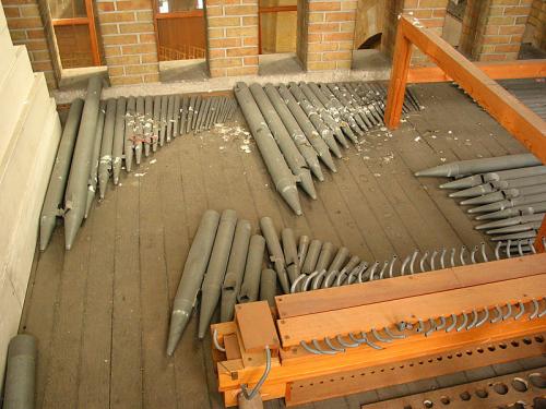Historiek Het instrument is momenteel uit elkaar gehaald. Het is afkomstig van de Sint-Pius X-kerk in Wilrijk, dezelfde kerk waar het Helmet-orgel naartoe werd verhuisd....