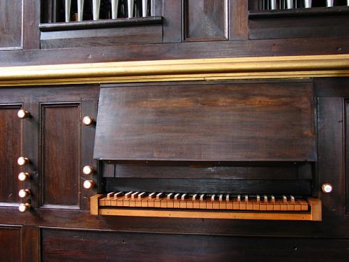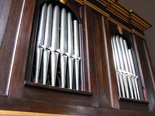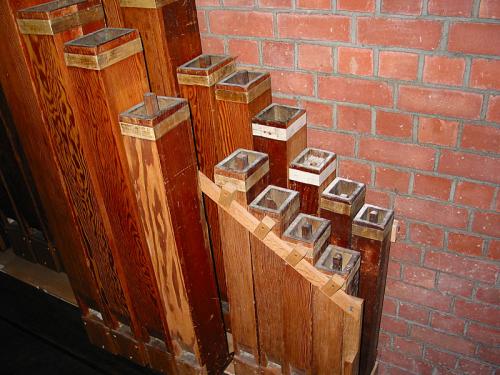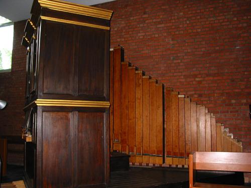 Orgelkast - plaats Op de grond, links voor, achterkant, opstelling met pedaalpijpen