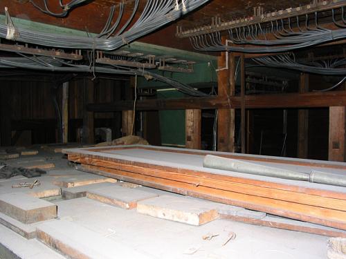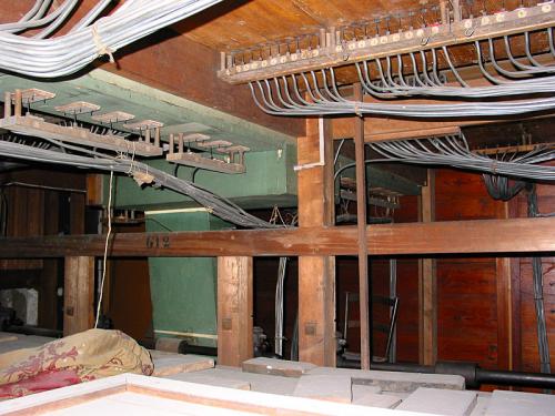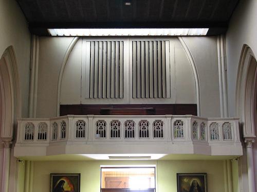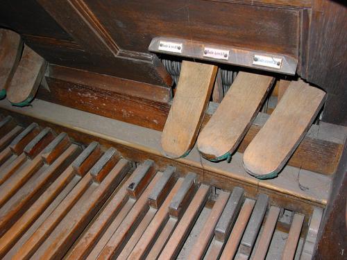Onder het blad verlichten twee gloeilampen het voetklavier en op de achterkant rechts van de speeltafel bevindt zich een schakelaar om ze aan te steken. Daartegenover, aan de linkerkant, bevindt zich de schakelaar van de windmotor.