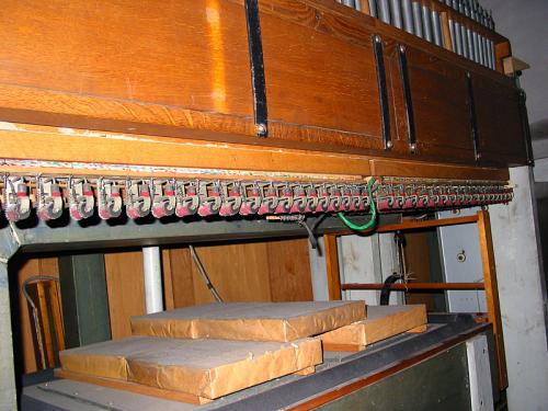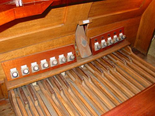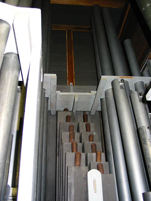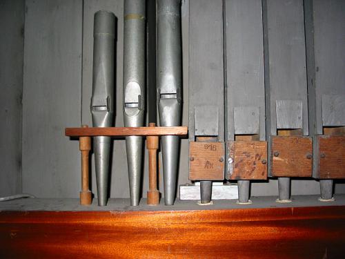 Links: Prestant 4’ van het Positief: C# tot h’ en rechts van C tot b’.