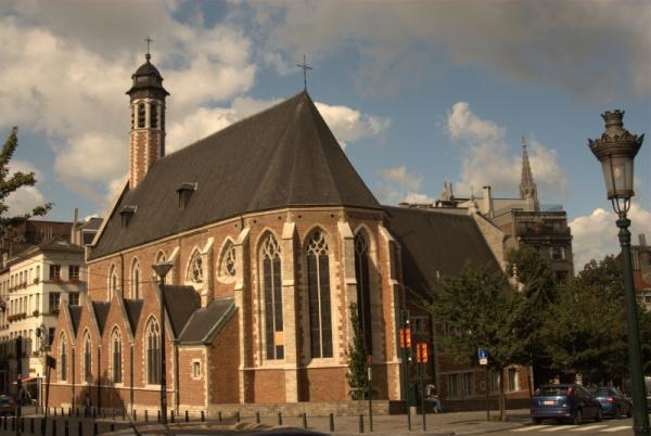 De Magdalenakerk werd opgericht in de 13de eeuw en in de 15de eeuw in gotische stijl heropgebouwd., Ze had te leiden onder het bombardement van 1695 en diende gerestaureerd te worden.De klokkentoren dateert uit 1697. In 1841 werd de Magdalenakerk toevertrouwd aan de Paters Redemptoristen die zich in België kwamen vestigen. In 1902 heeft de Staat de kerk en het klooster onteigend met het oog op de aanleg van de Noord-Zuidverbinding. Na de tweede wereldoorlog leek de kapel voor de sloop bestemd. Groot was dan ook ieders verrassing toen ze in 1957 uiteindelijk toch gered werd en architect Simon Brigode belast werd met de restauratie en het verbinden ervan met de gevel van de voormalige Sint-Annakapel in Brabantse barok, die dateert uit 1665. Sinds 1924 zijn de Paters Assumptionisten belast met de kerk. In zijn huidige staat lijkt de kapel op een bouwwerk uit de 15de eeuw, in laatgotische Brabantse stijl, zelfs al lijken bepaalde delen ouder. Het gebouw werd zwaar beschadigd tijdens de beschieting van 1695. Er bestaat trouwens een gravure waarop de zwaar beschadigde kerk te zien is. Ze werd eerst in 1840 gerestaureerd. In 1957-1958 volgde dan een heropbouw. Om de kerk in haar toestand van de 15de eeuw te herstellen, baseerde men zich op oude documenten.
