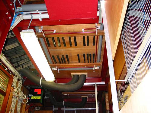 Herstelling : de windlade van het positief.